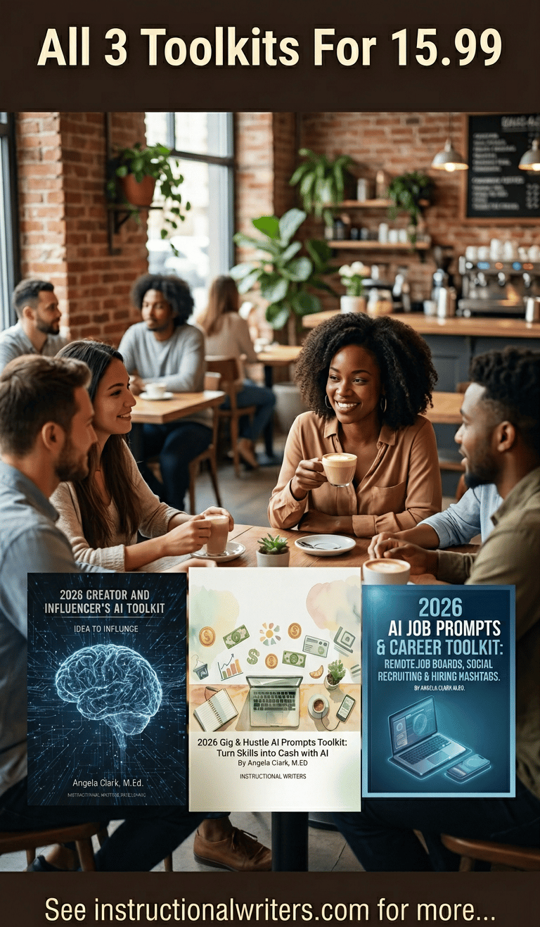 This toolkit helps you use AI to build income step by step. You’ll learn prompt writing with examples, simple goal planning, and where to find hidden 1099 gigs—plus practical forms to keep you organized.
